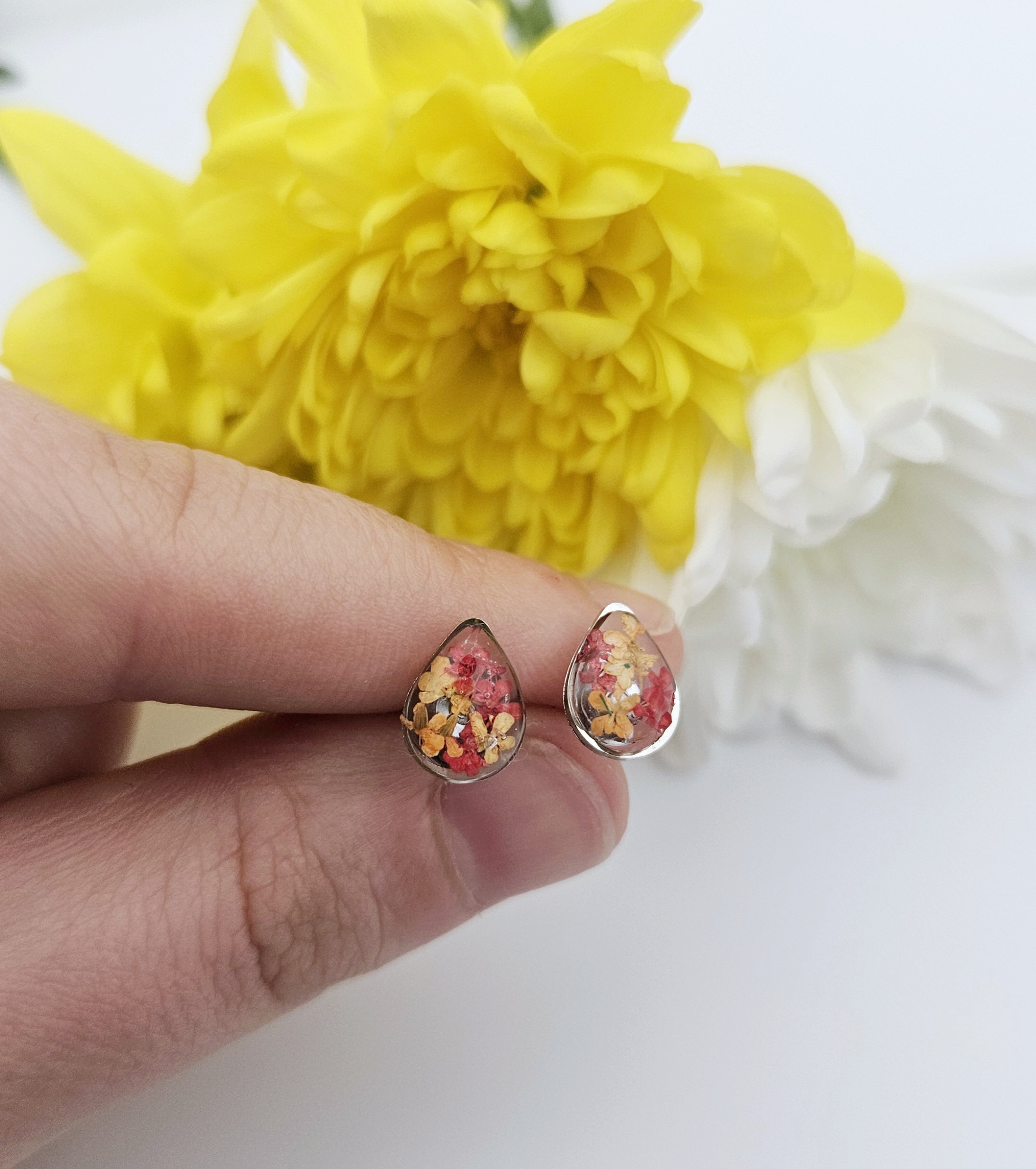 These charming handmade daisy earrings feature bold black petals with bright yellow centers, creating a playful yet modern floral design. Crafted with care, each daisy is lightweight and comfortable, suspended from sleek gold stainless steel stud posts that add a touch of elegance. Perfect for everyday wear or to brighten up a simple outfit, these earrings blend fun, nature-inspired style with a clean, contemporary look. A lovely gift for flower lovers or anyone who enjoys unique handmade jewellery .