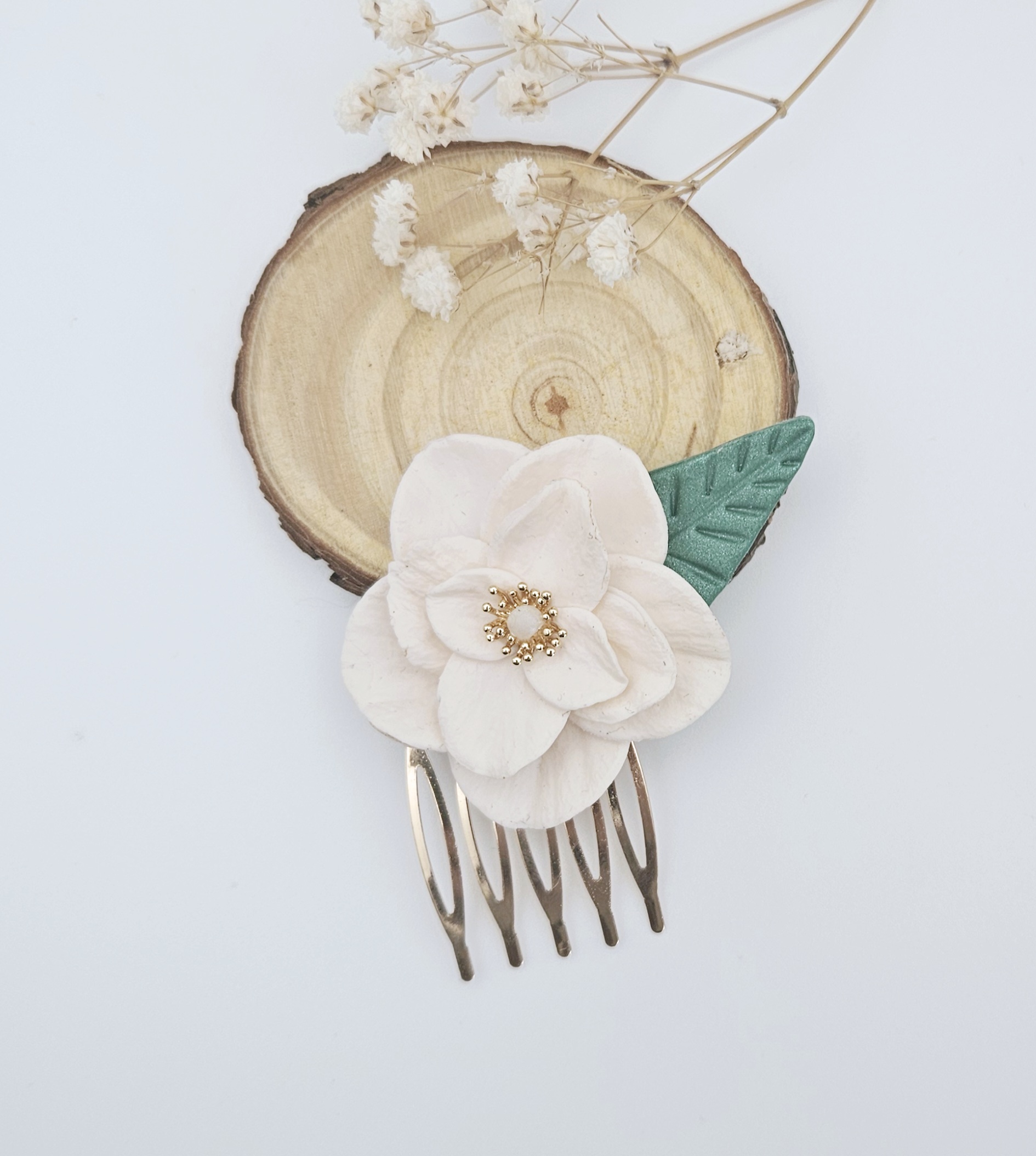 Each flower is carefully arranged on a gold-toned comb, offering both charm and durability. Lightweight and comfortable to wear, it tucks effortlessly into an updo, half-up style, or loose waves—adding a touch of nature-inspired romance to any look.