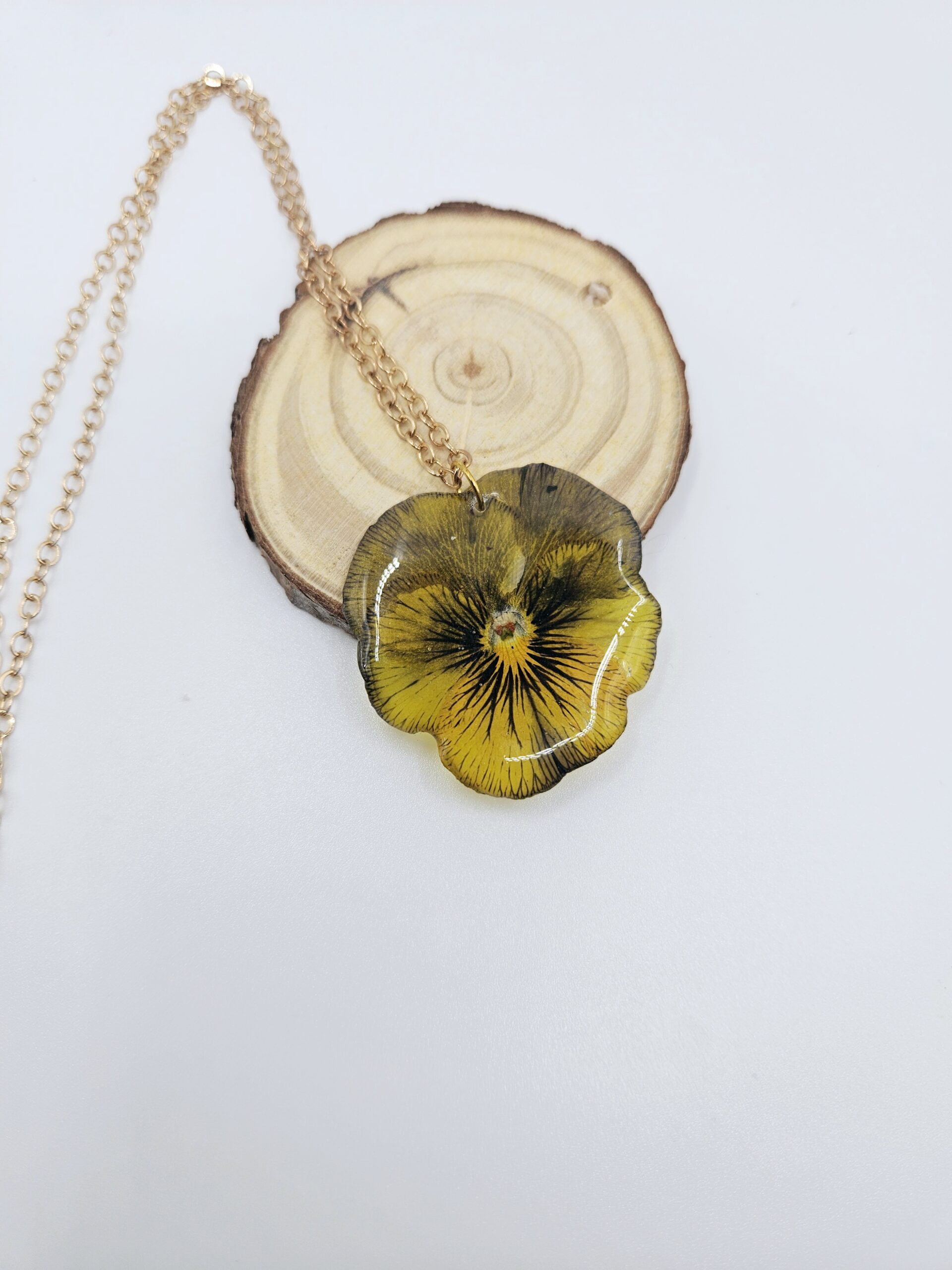 Make a timeless impression with this white Pansy statement necklace. Delicate and eye-catching, this real flower jewellery captures the soft elegance of a natural bloom. A real Pansy is carefully preserved in crystal-clear UV resin, allowing its gentle curves and pale hues to shine. The result is a truly one-of-a-kind pendant that feels both graceful and unique.